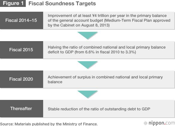 Abe Shinzō deficits primary balance Abenomics fiscal policy government bonds fiscal soundness targets fiscal rebuilding social security spending