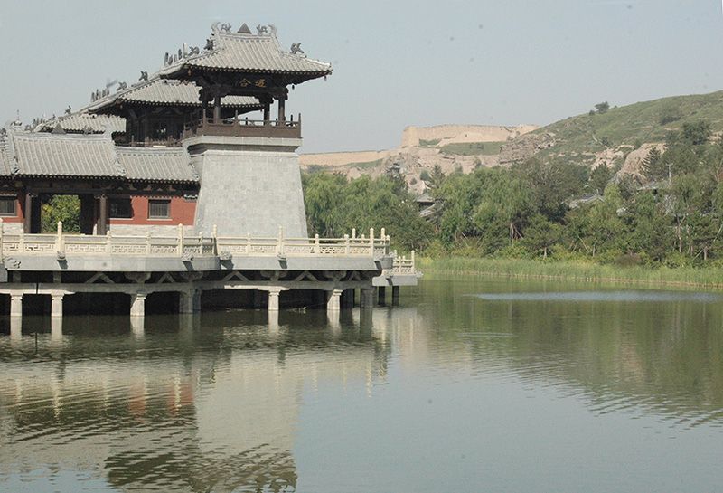 The second group of photos I received was also surprising. These were photos of a tourist attraction recently built outside the famous Buddhist Yungang Grottoes near Datong, which UNESCO has designated a World Heritage site. The Shan Tang Shui Dian, as it is called, is a reconstructed Northern Wei palace, said to have been designed in accordance with description in the Northern Wei geographical work Shui jing zhu (Commentary on the Waterways Classic). It is built over an artificial lake brimming with water.