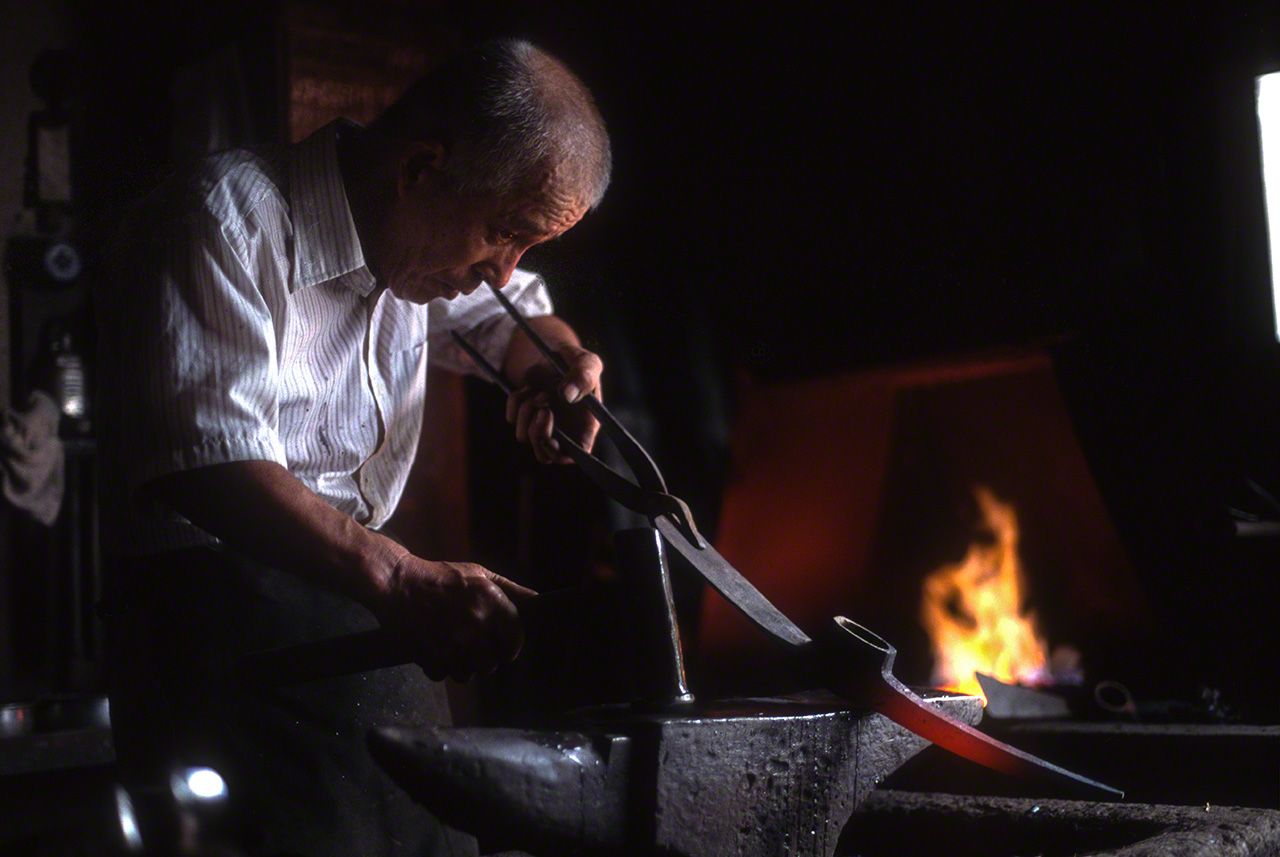 Herrería Takahashi de Nimachō, prefectura de Shimane. En la sociedad mecanizada actual sigue habiendo trabajos que solo pueden realizarse entre artesanos.