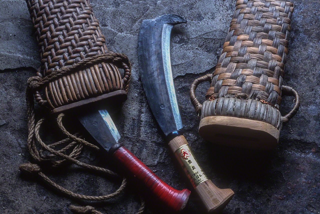 Herramientas para la silvicultura elaboradas en la herrería Yamamoto de Hyūga, prefectura de Miyazaki.