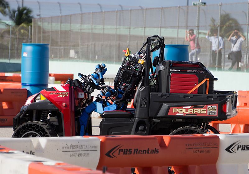 如上所述,日本立足於「3・11」地震中反映出來的課題,不斷對災害應對機器人加以改良,而美國則一直致力於開展旨在將具有高度通用性的人形機器人用於災害應對的研發工作。2013年末,美國國防高級研究規劃局(DARPA)主辦了「DARPA Robotics Challenge(DRC)」機器人競技大賽,宗旨是推進可在假定會引發核電廠事故的災害發生時實施應急處理的機器人開發工作。參賽機器人需要完成包括駕駛車輛等8個任務,顯然是按照類人機器人標準來設定的。清水先生獲得了在美國考察此項賽事的機會。