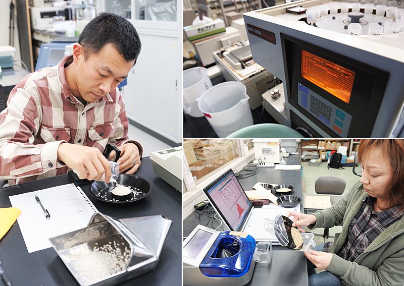 儘管如此,最終判斷稻米味道還需要靠人的舌頭。在「味覺味道試驗」中,以上川農業試驗場的「七星」為基準,研究員和工作人員對4-5種米飯進行實際品嚐,在白度、光澤度、飯香、口感、味道、黏度、柔軟度、綜合性等方面作了5個等級的評價。在此過程中,除米飯外,允許入口的只有茶水。就這樣進行了連續4個月的品嚐比較。篩選到一定階段後,勝出的稻米在品質上的差別就越來越小,比較起來就愈加困難。有沒有可以錘煉味覺的竅門呢?「這只能用次數說話,也就是憑經驗的積累。不是根據個人的喜好,而是根據日本人所喜好的光澤、透明感、恰到好處的黏度等來進行判斷。」