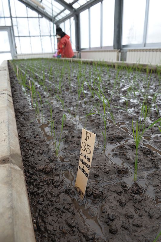 11月,周圍是一片皚皚白雪的世界。上川農業試驗場的溫室裏卻在進行反季節的插秧,精心種下了81種雙親不同的新雜交品種共4,000株