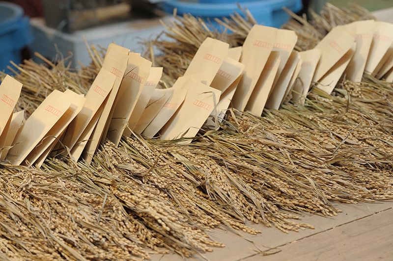 那麼,水稻的品種改良到底是怎樣的一個過程呢?「每年進行100種左右的雜交試驗,培植出15-20萬的植物個體。最初的3-4年中,反覆進行世代交替使其性質得到穩定,並掌握它們的味道、耐寒性及抗病性、產量等特徵,逐步篩選出優良種系。最後還要請農戶進行試驗栽培,直至品種註冊登記為止,大約花費了10年時間。」雖然聽上去輕而易舉,但實際上因為屬於少量生產,所以從雜交、插秧、割稻、脫粒、檢查等,整個過程大多是靠實實在在的人工作業。而且即使進入最終階段,也有可能無法實現品種註冊,所以說這確實是一項考驗耐心的工作。在數十萬的稻種個體中,評估出米粒的白度和均勻性、對病害及寒冷的抵抗性、稻稈的結實性、稻殼的不易綻裂性等所有的特性,最後選出應該保留的種子。「5分滿分中,全是4分的不行。一定要有一項特別突出的。」