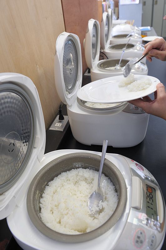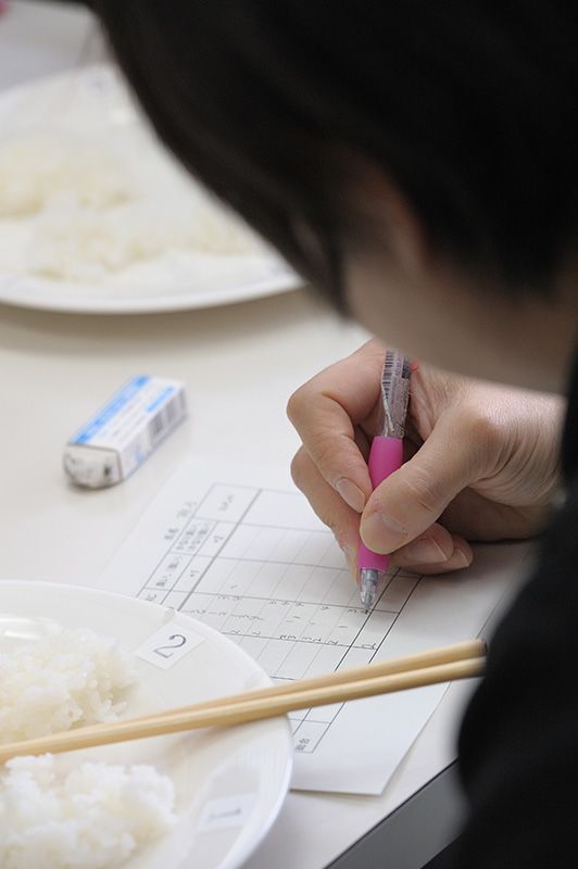 為了評價稻米的白度、光澤度和飯香,品嚐不同品種的米飯,用心咀嚼出它們的微妙差異。有時還會重新盛上一份,反覆品味