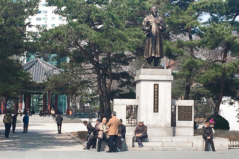 鍾路のなかでも、特に数多くの高齢者が集まるのが、パゴダ公園(タプコル公園)である。パゴダ公園は、韓国初の近代式公園で、歴史的な名所としても知られるが、近くに韓国最狭といわれる人口密集度の高いドヤ街があったこともあって、公園の中や周辺は、昔から行き場のない高齢者やホームレスがたむろする場所でもあった。そのような人々のために、長期にわたって民間団体による炊き出しなどの支援活動が実施されており、ますます多くの高齢者が集まるようになった。大きな敬老堂とも呼ばれている。