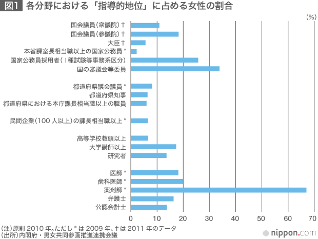 安倍晋三首相も同年1月、世界経済フォーラム年次総会(ダボス会議)での演説で、「いまだに活用されていない資源の最たるものが女性の力。日本は女性に輝く機会を与える場でなくてはならない。2020年までに指導的地位にいる人の3割を女性にする」と世界に公約した。目標達成は容易ではないが、その実現に向け次のような施策を打ち出した。
