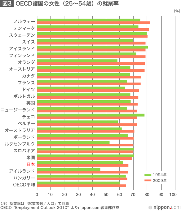 2012年10月、東京で開かれたIMF・世銀総会の際、ラガルドIMF専務理事が「女性は日本の潜在力。働く女性を増やせば日本経済はよくなる」と発言し、こうしたメッセージが「女性の活躍促進こそ日本再生に不可欠」との機運を国内で高めている。男女共同参画会議報告書(2012年)によれば、女性の潜在労働力である就業希望者342万人が就労すれば、雇用者報酬総額は7兆円程度(GDPの約1・5%)増加する、と試算されている。