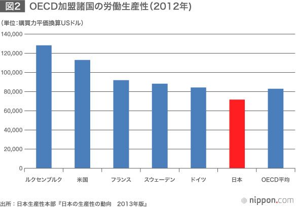 しかし、図2からもわかるように、日本の労働生産性は、近年やや回復傾向にはあるものの、主要先進国のなかでは低位であり、OECD加盟国の平均に及ばない。昨年6月の「日本再興戦略-JAPAN is BACKー」では、産業の新陳代謝の促進、ベンチャー参入の加速、規制改革、人材資源の活用、科学技術の振興など重要性がうたわれた。生産性の向上には、これら成長戦略を確実に実りのあるものにしていくことが重要である。