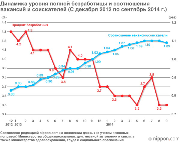 Предполагалось, что бюджетное стимулирование через два принятия масштабного дополнительного бюджета и другие меры будут способствовать поддержанию экономической конъюнктуры. Между тем, несмотря на увеличение ассигнований на проведение общественных работ, это не привело к возвращению былой активности экономической жизни японских регионов. Удешевление йены и рост котировок акций, которые произошли благодаря смягчению монетарной политики, способствовали улучшению деловых настроений предприятий, в связи с чем просматривается тенденция к улучшению статистических показателей трудовой занятости — росту числа трудоустроенных, улучшению соотношения числа вакансий и соискателей. Наметились и подвижки в направлении повышения оплаты труда, главным образом, среди крупных предприятий. У крупных экспортёров происходит рост прибыли, обусловленный, в числе прочего, и эффектом от удешевления йены.
