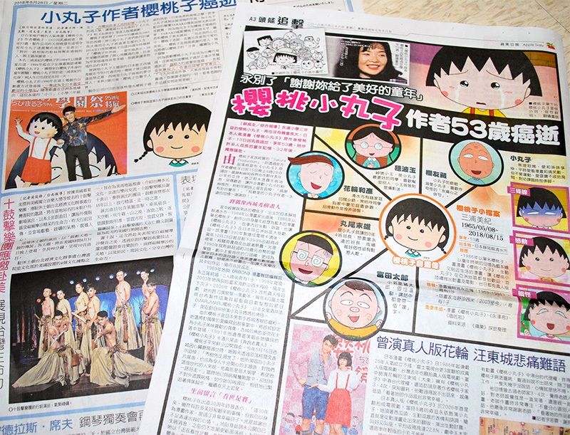 إحدى الصحف في تايوان حيث يحظى عمل ساكورا بمتابعة الكثير من الأشخاص، تورد تقريرا عن وفاة ساكورا في عددها الصادر في 28 أغسطس/آب (حقوق الصورة لجيجي برس).
