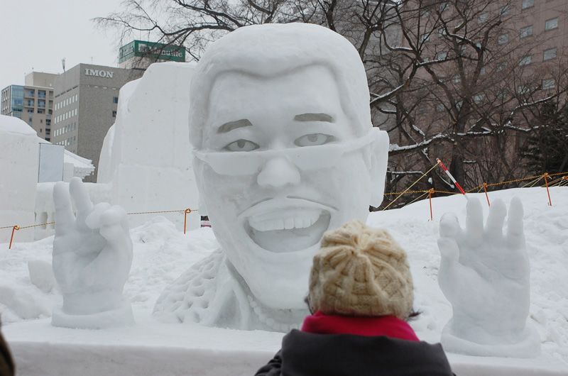 تمثال ضخم للكوميديان بيكو تارو يحيي زوار حديقة أوودوري في مهرجان سابورو للثلوج هذا العام. جيجي برس.