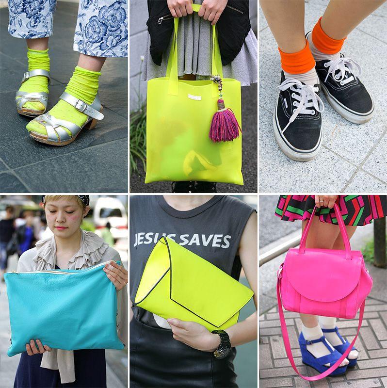 لقد انتشرت في وسائل الإعلام المختلفة وخاصة المجلات ألوان النيون كواحدة من الموضات الدارجة في الربيع والصيف. إلا أن ارتداء هذه الألوان الفاقعة يحتاج إلى الجرأة والقدرة العالية على التنسيق وتشكل هذه الألوان تحديا لليابانيين. إلا أن الشباب عملوا على ارتداء أحذية وجوارب وحقائب لها مثل هذه الألوان. ونجد أن اللون الفوسفوري هو الأكثر رواجاً.