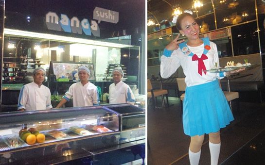 ومانغا سوشي، مطعم يبهج رواد دبي بأفكار ذات علاقة بالمانغا اليابانية، وهو متجر محلي من بنات أفكار مجموعة السلطان للضيافة. وطهاة السوشي ”إتاماي“ والنادلات هم فريق أعضاءه من الفلبين ونيبال وسنغافورة، ومعظم الزبائن هم من العرب. لذا فقد لا تحصل الأسماك غير المطهية في هذه الآونة على اهتمام واسع في دولة الإمارات العربية المتحدة، وبالتالي فإن قائمة الطعام تركز على المأكولات البحرية المسلوقة والمغلية وأطباق الخضار.