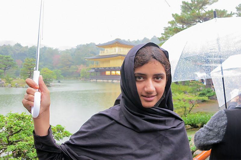 نبيلة رحمن في المعبد الذهبي بكيوتو، ١٧ نوفمبر / تشرين الثاني عام ٢٠١٥.