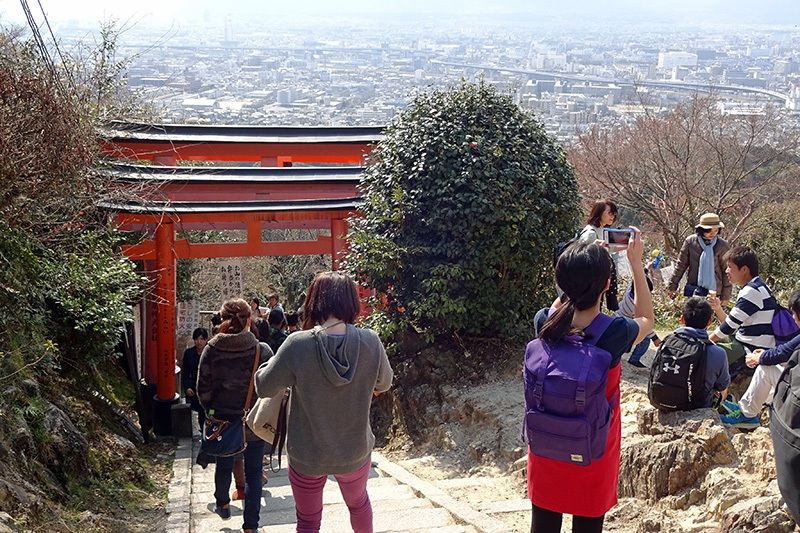 الطريق المؤدي إلى معبد فوشيمي إيناري يوفر رؤية واضحة لكيوتو والتلال المحيطة بها.