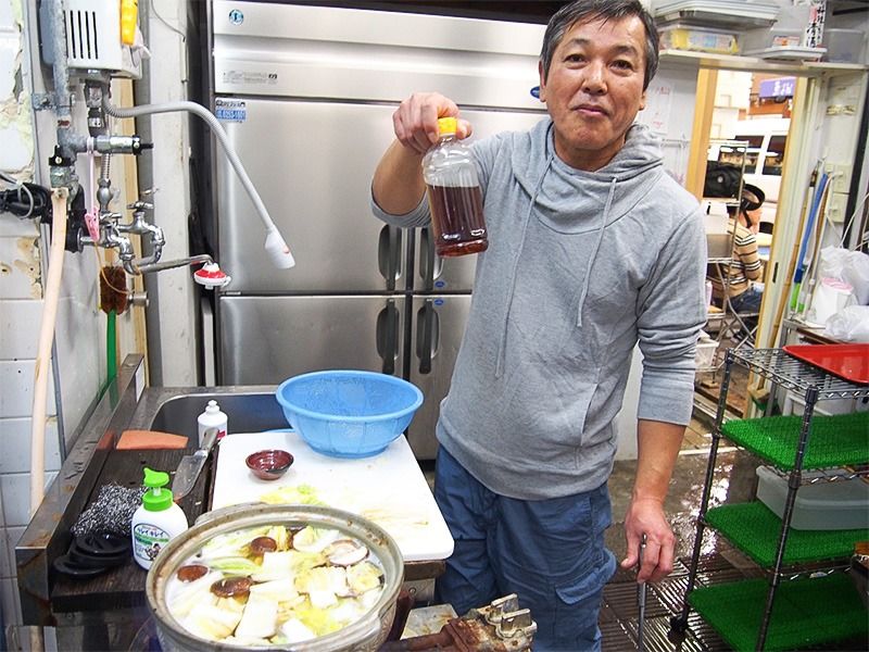 يأتي الطهاة المحترفون من مختلف المطاعم إلى هنا لشراء أسماك الينفوخ من (مينامي)، وهو أحد المتاجر التي شُيدت قديمًا ومتخصصة في بيع سمك الينفوخ الطازج، ويقدم حاليًا الأكل في صحون تقدم ساخنة، حيث يجلس الزبائن على طاولات قابلة للطي كتلك المستخدمة في المخيمات. وقد كنت أتردد على هذا المكان طوال ثلاثين عامًا، أصبحت خلالها صديقًا لمالك المتجر. وفي أحد الأيام اقترح علي أن أجرب مرق الحساء، وقد كان بالفعل لذيذ للغاية. فعلى ما يبدو، منذ حوالي عشر سنوات، بدأ السياح الصينيون يطلبون تناول سمك الينفوخ عندما كانوا يترددون على المكان، ورأى المتجر حينها أنها فرصة يجب استغلالها. وحاليا يتم تقديم الأسماك مع صوص (ponzu) الشهير (صوص الصويا الحمضي) على الطريقة اليابانية التقليدية، هذا إلى جانب تقديم حساء المتجر المميز على الطريقة الصينية الأصلية.
