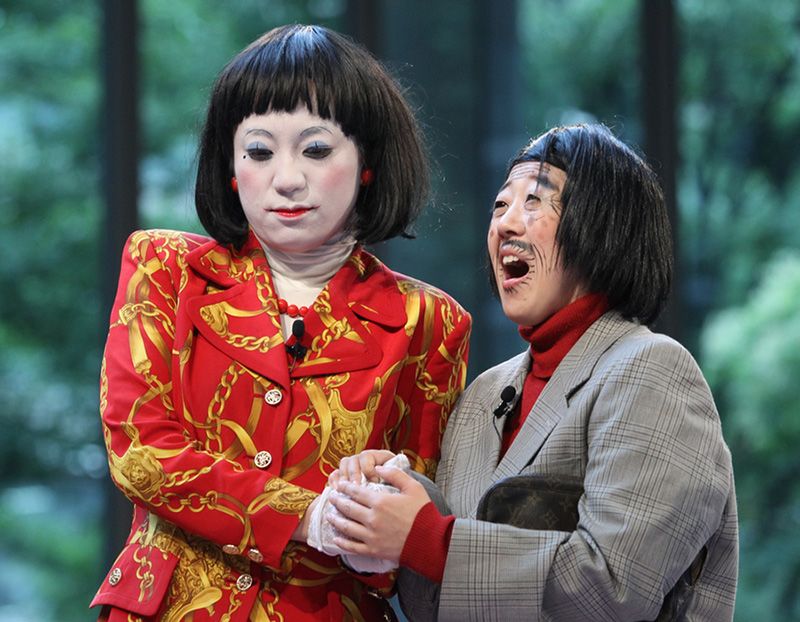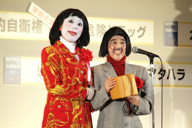 الثنائي الكوميدي هاشيموتو كويوكي (اليسار) وناكانو سوكو (اليمين) فازتا بفضل عبارتهما الشهيرة. (الصورة من جيجي برس)