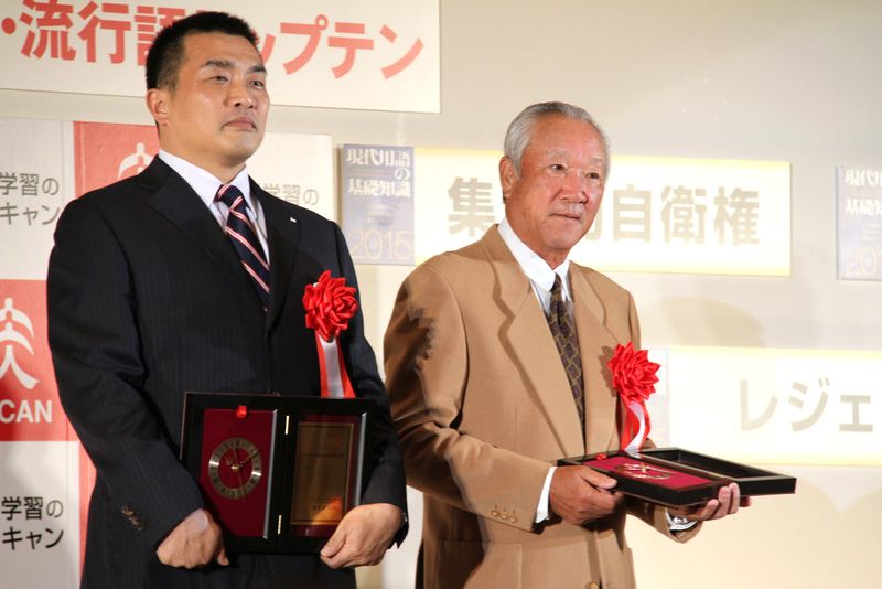 الأساطير: قاذف البيسبول لفريق تشونيتشي دراغون ياماموتو ماسا، يسار، أصبح أكبر لاعب يسجل الفوز في الدوري الياباني للبيسبول للمحترفين، عندما فاز بمباراة في سبتمبر/ أيلول وكان عمره وقتها ٤٩ عاما. كما أن لاعب الغولف المحترف أوكي إيساو، البالغ من العمر ٧٢ عاما قد لعب الغولف لما يزيد عن الـ ٥٠ عاما. ولا يزال نشطا في الجولة العليا. لم يتمكن المتزحلق كاساي نوريأكي من حضور الحفل لكنه وصل إلى لقب الأسطورة بعد أن حطم الرقم القياسي الشخصي له كأكبر لاعب للقفز التزلجي من خلال مشاركته بنهائيات كأس العالم في فنلندا في ٢٩ نوفمبر/ تشرين الثاني
