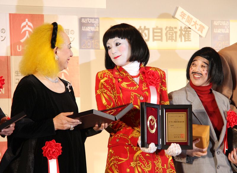 قامت دار النشر ”جي يو كوكومين شا“ بالإعلان عن عام ”الكلمات الأكثر شعبية لهذا العام“. وقد تقاسمت كلمتان الجائزة الكبرى لهذا العام Dame yo. dame dame ”لا لا مستحيل“ التي اشتهرت هذا العام بفضل العروض التلفزيونية للثنائي الكوميدي النسائي Nippon Erekiteru Rengo، وShudanteki Jieiken ”حق الدفاع الذاتي الجماعي“ والتي ظهرت للعام الثاني على التوالي في قائمة الكلمات والمصطلحات المرشحة. وتعد الجائزة المشتركة تراجعا عن العام الماضي، حيث احتلت أربعة كلمات المرتبة الأعلى في الترتيب.