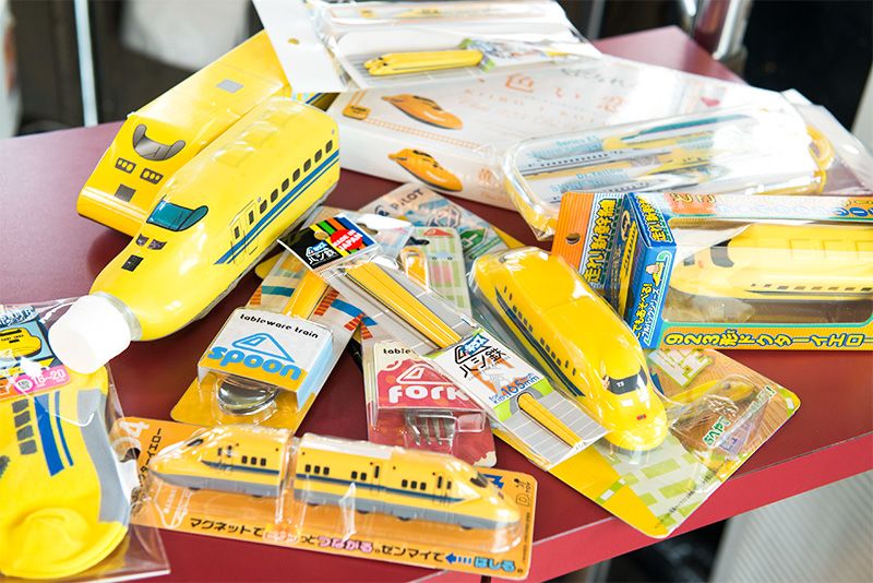 ولكن بالنسبة لأولئك الذين لم يتمكنوا من الاقتراب منه، هناك دائما خيار وهو شراء بعض من البضائع الكثيرة المتعلقة بدكتور يلو المطروحة للبيع. وهي تتضمن علب طعام ”بينتو“ وحقائب ظهر، ووحدات USB لتخزين البيانات، وساعات، وأحذية رياضية على شكل قطار الاختبار الشهير، بالإضافة إلى جوارب وقمصان وأدوات أخرى مزينة بتصميم تلك القطارات. ومن الشائع أيضا الربط بين هذه القطارات وشخصيات شهيرة مثل هالو كيتي وريلاكّوما، وبالطبع هناك منتجات على شكل مجموعات للقطار أيضا.