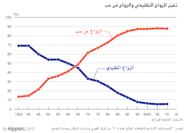 كان الزواج التقليدي آنذاك لا يزال غالبًا (ففي عام ١٩٥٧، كان يمثل الزواج التقليدي نسبة ٥٤٪، والزواج عن حب ٣٦.٢٪ طبقًا للإحصائيات الأساسية لاتجاهات المواليد لعام ٢٠١٥). وتفوّق الزواج عن حب على نظيره التقليدي في غضون عام ١٩٦٥. فتم التشديد على أن زواجهما عن حب بعدما وقع كل منهما في غرام الآخر واختارالآخر شريكًا لحياته، بعدما تقابلا بملعب كارويزاوا للتنس، حتى صار يُطلق على زواجهما ”حب ملعب التنس“. وأصبح الزواج عن حب لوعة عند الشعب. ولا بد أن أخبار زواج الإمبراطور عن حب ارتكازًا على مشاعره، كما أصبحت دافعًا قويًّا للشباب أن يصرّحوا عن رغبتهم بالزواج عن حب بجرأة فيما بعد.