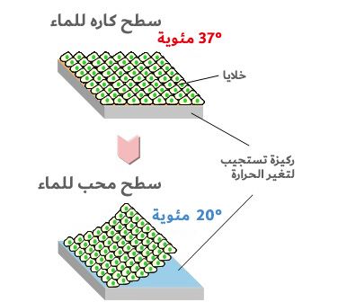 السطح كاره للماء عند درجة حرارة 37° مئوية، ولكن يصبح محب للماء عند درجة الحرارة 20° مئوية ما يسمح بإزالة الخلايا وهي سليمة على شكل رقاقة.