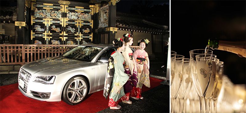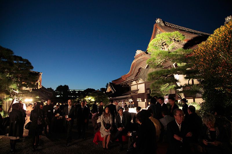 أقيم الحفل الخاص في نيشي هونغان جي بالقرب من فناء المعبد. حيث تراءت النساء تحت الأضواء الخافتة للفوانيس وقد ارتدين الكيمونو الأنيق كما بدت وجوه الضيوف مبتهجة. ويشارك الكثير من الناس بهذا الحفل سنوياً. وعلى مقربة من البوابة المضاءة والمتميزة بشكلها الجميل، والتي تعد كنزاً وطنياً في حد ذاتها، عرضت سيارة فاخرة، مقدمة من الراعي الرئيسي للحدث. وقد ارتشف الضيوف الشمبانيا وهم يتجاذبون أطراف الحديث غارقين في أجواء الحفل.