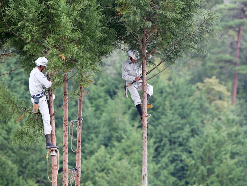 عرض كيتاياما سوجي (سرو اليابان). تشذيب الفروع في الحفل الوطني الأربعين للعناية بالأشجار الذي أقيم في أكتوير 2016. الصورة: جيجي برس.