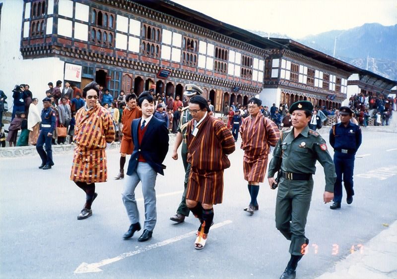 الأمير ناروهيتو يتمشى في العاصمة البوتانية تيمفو في مارس/آذار عام 1987 (الصورة بإذن من سايتو كاتسوهيسا).