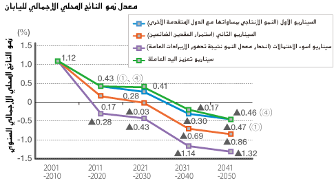 معدل النمو الإنتاجي للإقتصاد الياباني وفقا لكل سيناريو