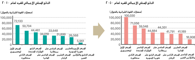 | الترتيب | الناتج المحلي الإجمالي لـ ٢٠١٠ | الناتج المحلي الإجمالي لـ ٢٠٥٠ | |||