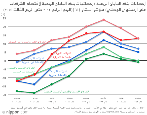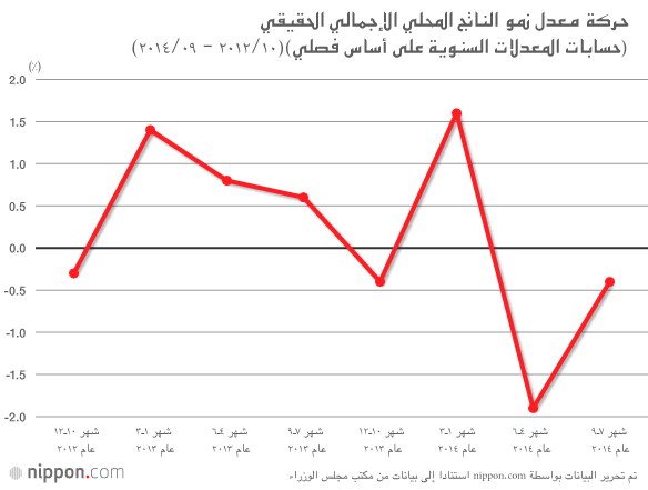 اكتسبت إحصاءات الناتج المحلي الإجمالي لليابان (GDP) في الربع من يوليو/تموز وسبتمبر/أيلول أهمية كبرى كوسيلة أخيرة للبت في القرار النهائي لرئيس الوزراء بخصوص زيادة ضريبة الاستهلاك مرة أخرى والتي كانت مقررة في العام القادم. وتشير الأرقام الأولية من إعلان ١٧ نوفمبر/ تشرين الثاني إلى أن الناتج المحلي الإجمالي (GDP) تراجع بنسبة سنوية قدرها ١.٦٪ في الربع الثاني، ليستمر النمو السلبي على التوالي مع تراجع الربع الأول في الفترة من أبريل/نيسان إلى يونيو/حزيران. وقد أدّت النتائج والتي تعتبر أقل بكثير من متوسط توقعات الاقتصاديين إلى صدمةً للأسواق. لفتت إحصاءات الناتج المحلي بأن الإنفاق الاستهلاكي الخاص، والذي يشكل نحو ٦٠٪ من الناتج المحلي الإجمالي قد أخذ بالتباطء نتيجةً لسياسات مثل زيادة ضريبة الاستهلاك إلى ٨٪ في شهر أبريل الماضي، والأرقام توضح عدم تعافي الاقتصاد.