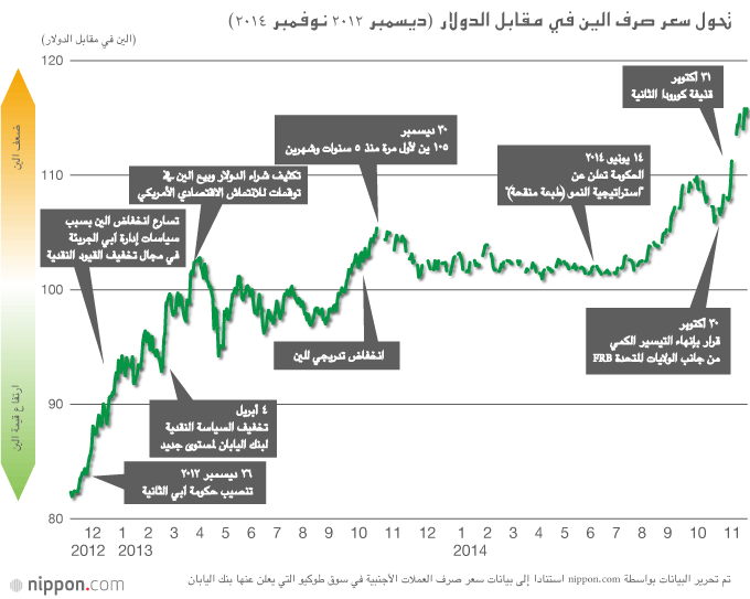 (النص الأصلي بالغة اليابانية بتاريخ ٢٠ نوفمبر/ تشرين الثاني ٢٠١٤. صورة الغلاف: رئيس الوزراء الياباني شينزو آبي يعلن عن تأجيل زيادة ضريبة الاستهلاك وحل مجلس النواب في مؤتمر صحفي في ١٨ نوفمبر/تشرين الثاني. الصورة من جيجي برس)