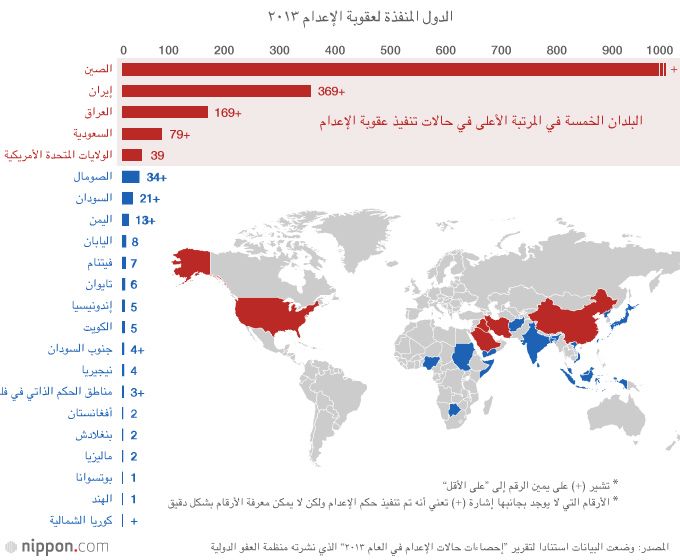 يختلف وضع تنفيذ نظام عقوبة الإعدام في كل بلد ومنطقة، ولكن هذه لمحة عامة عن الوضع وفقا لتقرير منظمة العفو الدولية عام ٢٠١٣، ويمكن تلخيصها على النحو التالي.