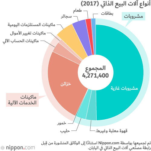 تواصل أعداد آلات البيع الذاتي وإيراداتها التراجع والانخفاض في اليابان. فوفقًا لحسابات جمعية مصنعي نظام البيع الآلي في اليابان، كان هناك 4،271،400 آلة بيع ذاتي على مستوى البلاد اعتبارًا من نهاية عام 2017. وبالمقارنة مع العام السابق، فقد انخفض عدد آلات بيع المشروبات، والتي تمثل 57% من جميع آلات البيع الذاتي في اليابان، بنسبة 1.2% ليصل إلى 2،443،800.