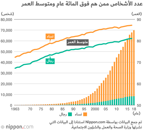 أصدرت وزارة الصحة والعمل والشؤون الاجتماعية اليابانية إحصاءات تظهر أنه اعتبارًا من 15 سبتمبر/ أيلول 2018، ارتفع عدد كبار السن الذين بلغوا 100 عام أو أكثر بنسبة 2014 شخص عن العام السابق ليصل إجماليهم إلى 69785 شخصًا. وتعد هذه هي السنة الثامنة والأربعون على التوالي التي يزداد فيها العدد، وتمثل النساء 88.1% من هذه الفئة العمرية.
