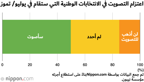 وجدت دراسة استقصائية على الإنترنت أجرتها مؤسسة نيبون أن 49.7% من المستطلعين يعتزمون التصويت في انتخابات مجلس الشيوخ الياباني في 21 يوليو/ تموز، عندما يكونون في سن الثامنة عشر أو التاسعة عشر. يشبه هذا المستوى 46.8% من المراهقين الذين صوتوا في انتخابات مجلس الشيوخ لعام 2016، والتي كانت أول انتخابات وطنية أجريت منذ تم تخفيض سن التصويت من 20 إلى 18 عامًا.