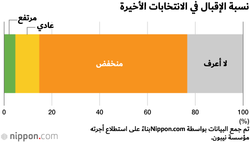 كما وجد الاستطلاع أن النسبة المئوية لأولئك الذين اعتبروا إقبال الناخبين ”منخفضاً“ في الانتخابات الوطنية الأخيرة ارتفعت إلى 61.9%. بين أولئك الذين يعتزمون التصويت في انتخابات يوليو/ تموز، كانت هذه النسبة أكبر، حيث بلغت 75.9%، مما يشير إلى ارتفاع مستوى الوعي السياسي.