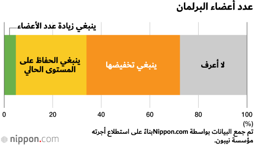 بعض الأسباب التي ذكرها أولئك الذين يدعمون خفض عدد أعضاء البرلمان تشمل ما يلي ”على الرغم من وجود مجلسين في البرلمان، فإن مجلس النواب هو الذي يقرر كل شيء“، ”من الصعب تقييم أداء كل عضو لكثرة عدد الأعضاء“، ”العمل الذي يقوم به البعض منهم لا يستحق مثل هذا الراتب المرتفع“. وفي الوقت نفسه، من بين أولئك الذين يرغبون في زيادة عدد أعضاء البرلمان، كان هناك نوع من الأفكار الداعمة للآراء التالية ”إذا زاد العدد، مع خفض الرواتب عما هي عليه الآن، فسيكون من الأسهل الحصول على مجموعة واسعة من الآراء“، "ينبغي إضافة دوائر انتخابية للمناطق التي بها أعداد كبيرة من السكان“.