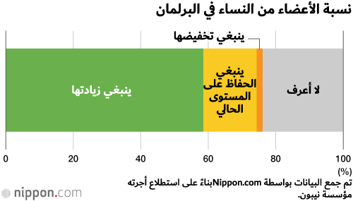 تتضمن الأسباب التي ذكرها أولئك الذين فضّلوا زيادة تمثيل النساء في البرلمان ما يلي ”إذا كان هناك خلل بين الرجال والنساء في البرلمان، فلن تتقدم المساواة بين الجنسين“، ”هناك اتجاه شوفيني من الذكور داخل المجتمع الياباني ككل، لذلك يحتاج القادة السياسيون في اليابان إلى أخذ زمام المبادرة للتغلب على طريقة التفكير هذه“.