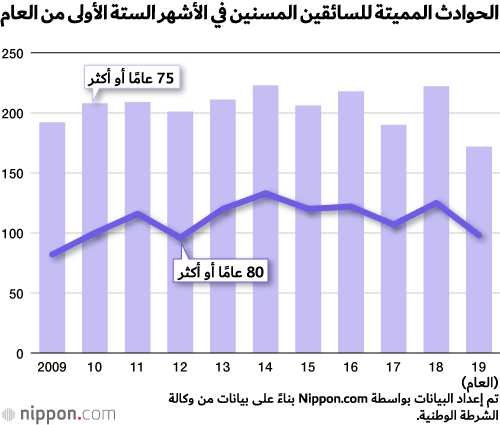 ينصب الاهتمام في اليابان على السائقين المسنين بعد عدة حوادث قاتلة تصدرت عناوين الصحف الوطنية. ومع ذلك، هناك دلائل تشير إلى أن معدلات السلامة تتحسن بين كبار سائقي السيارات. وفقًا لوكالة الشرطة الوطنية، فإن السائقين الذين يبلغون من العمر 75 عامًا فما فوق قد تسببوا في 172 حادث مروري قاتل في الأشهر الستة الأولى من عام 2019، منهم سائقي السيارات في سن 80 عامًا وما فوق كانوا مسؤولين عن 98 حادث مروري قاتل. وهو ما يمثل 50 و27 حادث أقل، على التوالي، مقارنة مع نفس الفترة من عام 2018.