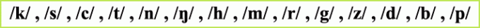 /Kyo/، /Kyu/، /Kya/ انظر إلى المقاطع فـي الجدول رقم (١). ولا شك فـي أن قلة هذا العدد من المقاطع الصوتية فـي اللغة اليابانية يُمكِّن الدارس من كتابة أي كلمة جديدة حتى وإن لم يكن قد درسها من قبل؛ نظراً للتماثل أو التقارب الشديد بين ما يُسمع وما يُكتب، وذلك على عكس اللغة الإنجليزية مثلاً التـي يوجد بـها كلمات كثيرة لا يستطيع الدارس كتابتها إلا أن يكون قد درسها من قبل مثل كلمتـي: enough- hiccough.