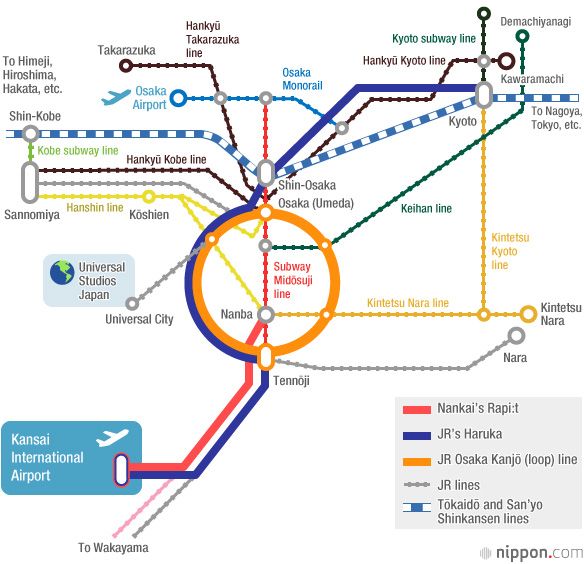 من مطار كانساي الدولي إلى أوساكا، كيوتو، كوبي، ونارا