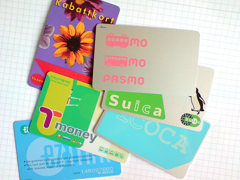 كانت البطاقات الذكية تستخدم بديلاً عن التذاكر في بداية الأمر وأصبحت الآن تستخدم على نطاق واسع في غالبية المواصلات العامة في المدن الكبرى، بطاقات ”Suica“ التي تصدرها شركة شرق اليابان للسكك الحديدية ”JR الشرق“ والتي بدأ العمل بها في نوفمبر/ تشرين الثاني عام ٢٠٠١. العلامة المميزة لبطاقات Suica هي شخصية بطريق آديلي الذي جاء من القطب الجنوبي إلى طوكيو. أما تكنولوجيا ”FeliCa“ وخاصية قراءة البيانات عن بعد في البطاقات الذكية فقد طورتها شركة سوني وهي تتيح إمكانية قراءة بيانات البطاقة عن بعد فقط من خلال لمس حافظة النقود أو الحقيبة من الخارج عند مكان فحص التذاكر دون الحاجة لاخراج البطاقة أو لمسها بطريقة مباشرة بشاشة الفحص. وقد قامت JR الشرق باستخدام هذه التكنولوجيا وتطوريها بشكل فريد لتصدر بعد ذلك بطاقات Suica الذكية.