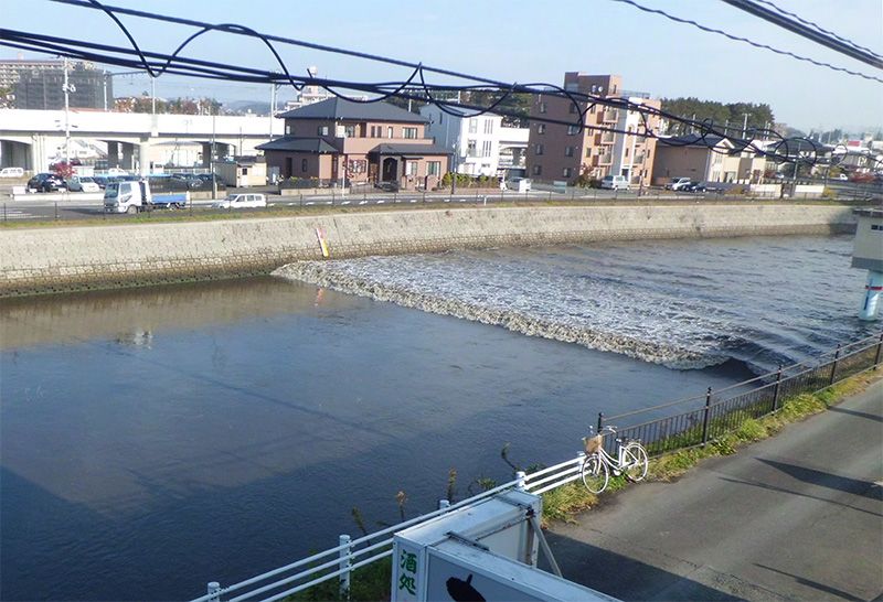 موجات تسونامي تتقدم باتجاه منبع نهر سوناوشي في تاغاجو، محافظة ميّاغي، فى ٢٢ نوفمبر/تشرين الثاني ٢٠١٦. الصورة مقدمة من قبل أوكازاكي ساداتوشي. (جيجي برس)