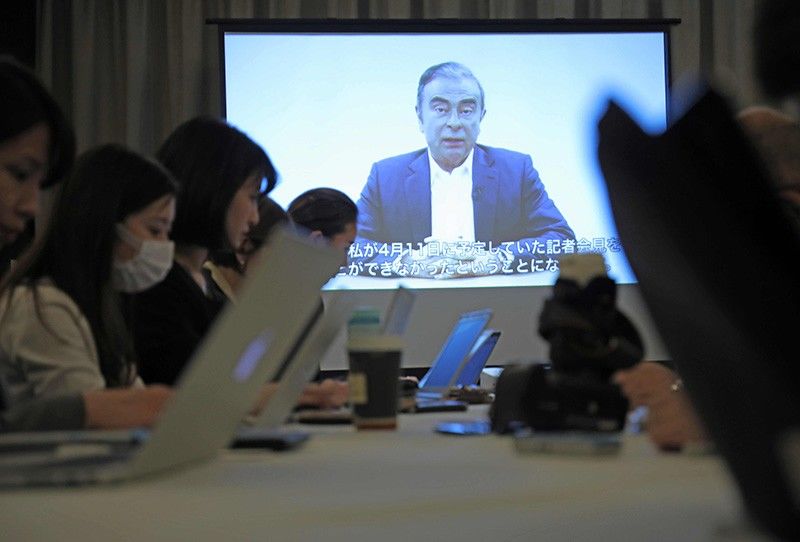 الفيديو الذي سجله كارلوس غصن رئيس شركة نيسان موتور السابق، والذي تم عرضه على الصحافة في مؤتمر صحافي في 9 أبريل/ نيسان 2019. جيجي برس.