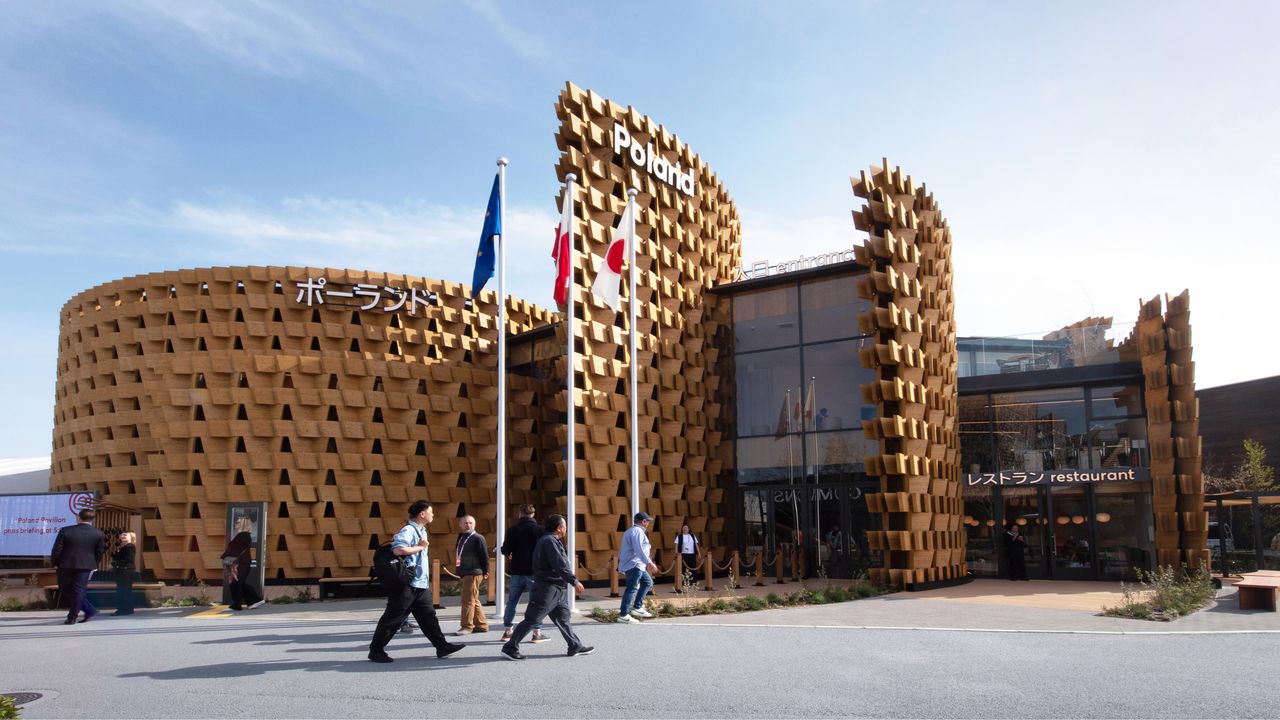 يجسد جناح بولندا في أوساكا إكسبو 2025 روح الإبداع والابتكار من خلال تصميم خارجي خشبي مبهر يعتمد تقنية كيغومي كوهو اليابانية التقليدية لربط الأخشاب دون مسامير. يتميز الهيكل بشكله المتموج الذي يحاكي الأمواج وحلزون الحمض النووي، رمزًا للديناميكية والتطور.