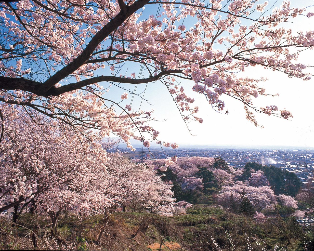 زهور الساكورا على قمة التل في حديقة إيبوشياما في ياماغاتا