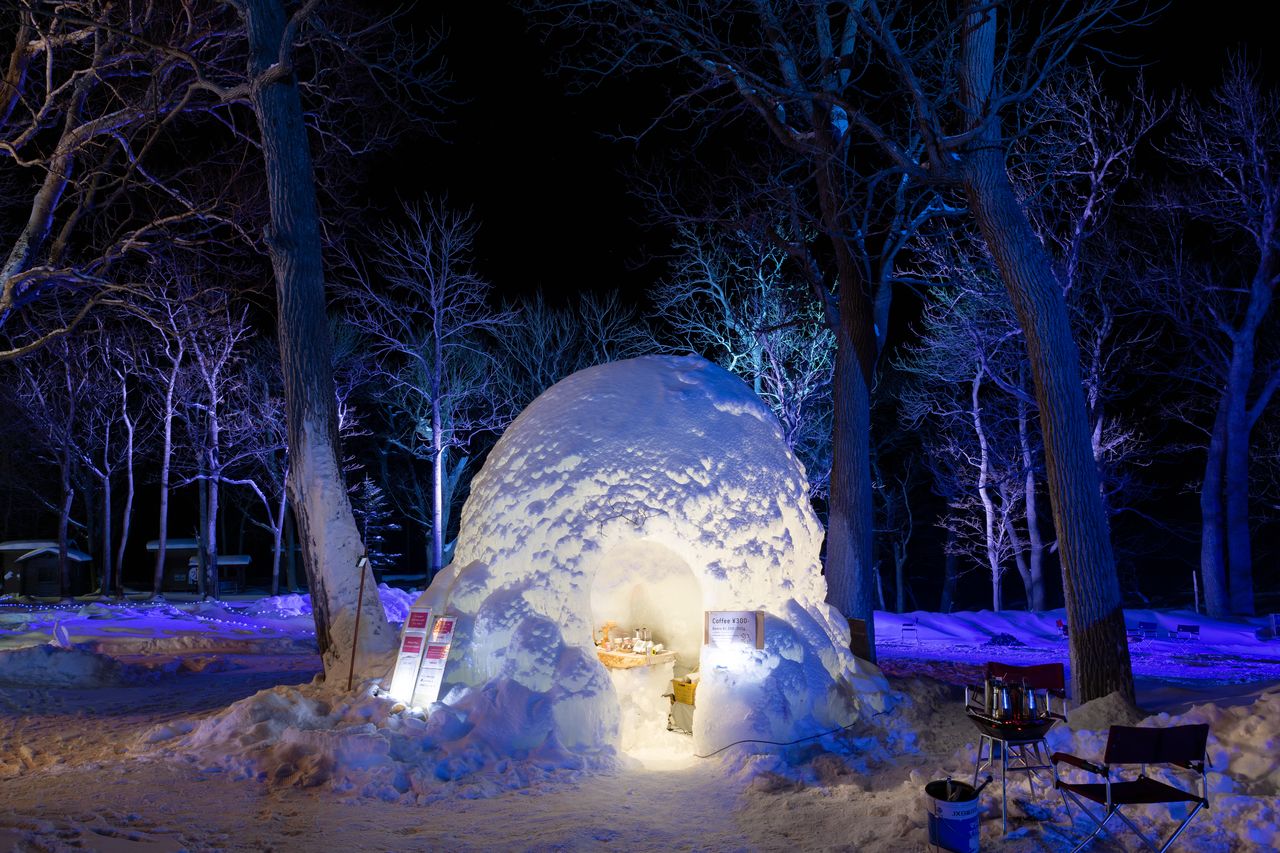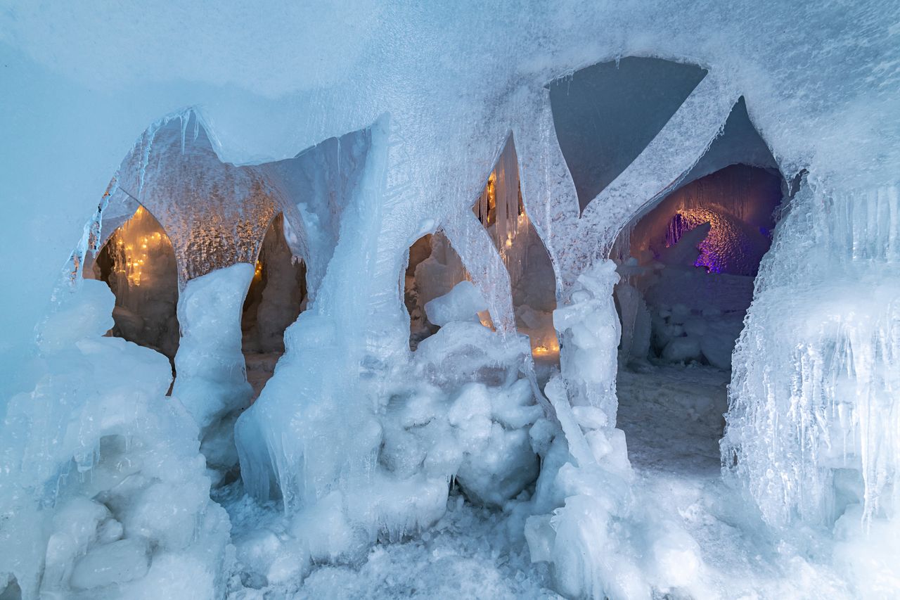 عند دخول قبة الجليد، يجد المرء نفسه داخل كهف جليدي مستمر مثل المتاهة. تحفز أشكال جدران القبة والتركيبات الموجودة داخلها الحواس كما لو أن لكل منها كيانًا خاصًا. وهذه الأشكال الجليدية لا تبدو على الإطلاق من صنع الإنسان. كما يوجد مكان للمرطبات في المبنى يسمى "بار ذا أيس"، ويقدم المشروبات الساخنة والكوكتيلات الأصلية في غرفة أكثر دفئًا من الخارج. يمكن التجول على مهل ذهابًا إلى القبة والتوقف هناك لالتقاط الأنفاس.